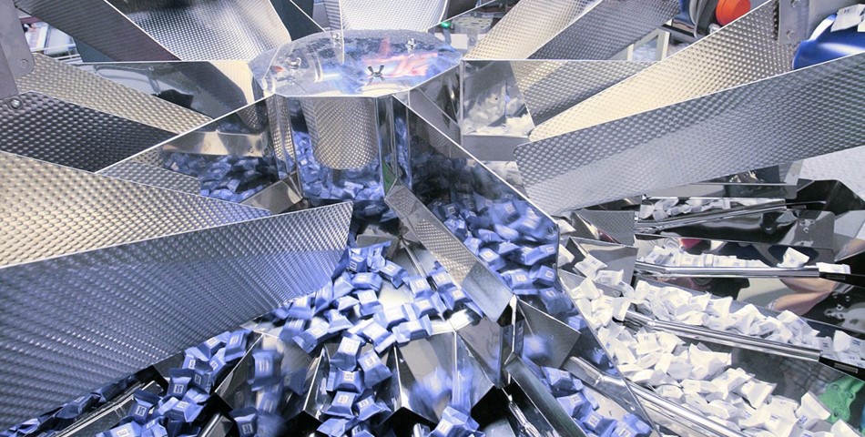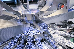 High head machines can be configured to feed multiple lines. And as well as its ability to handle different mixes, the same weigher can be configured to handle a single product for discharge simultaneously in up to eight different packs - delivering extremely fast speeds of up to 440 packs every minute. It is also possible to combine smaller mixes and discharge these into multiple outlets. When choosing a mix or multiple outlet weighing solution, there are a number of factors to consider. Clearly accuracy and efficiency are essential but these need to be taken into account alongside the required speed of the line. It is very important that sufficient weigh heads are allowed per item in the mix to ensure a stable combination can be achieved for weigh calculations each time. At the same time, the overall speed of the weigher will be dependent on the section using the fewest number of heads - so the more heads available (combined with enhanced weighing technology), the faster the potential speed. Of course, the nature of the product needs to be carefully considered. This will influence the angles, shapes and materials used in contact parts design, which will be critical to ensure effective product transfer through the weigher. Similarly, a compatible interface with the bag maker or distribution system is necessary to ensure that fast and efficient throughput is maintained. Size of the hoppers will also be dependent on the pieces size, bulk density and target weight of products being handled. It is worth therefore taking the time to assess your requirements in detail - including both current needs and potential future requirements - and then discussing these with your professional multihead weigher supplier to ensure that you have a solution that delivers the right mix of product and profit.